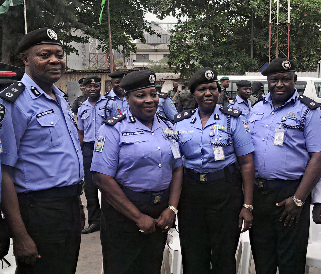 L-R: ?Commissioner of Police, Maritime Services, Aderemi Opadokun; Assistant Inspector-General (AIG), Maritime, Mrs. Kalafite Adeyemi; Commissioner of Police Western Ports, Mrs. Hilda Ibifuro-Harison; and Deputy Commissioner of Police, Salem Amacree when the AIG visited the Lagos Port Complex, Apapa recently.